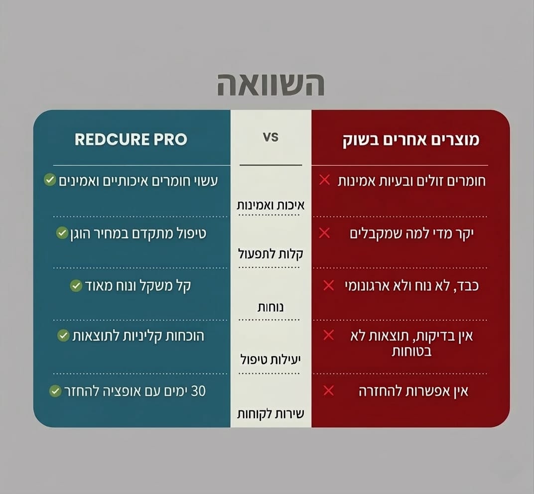 בניגוד למכשירים סטנדרטיים, RedCure משלבת טכנולוגיה מתקדמת של אור אדום שחודרת לעומק הרקמה.